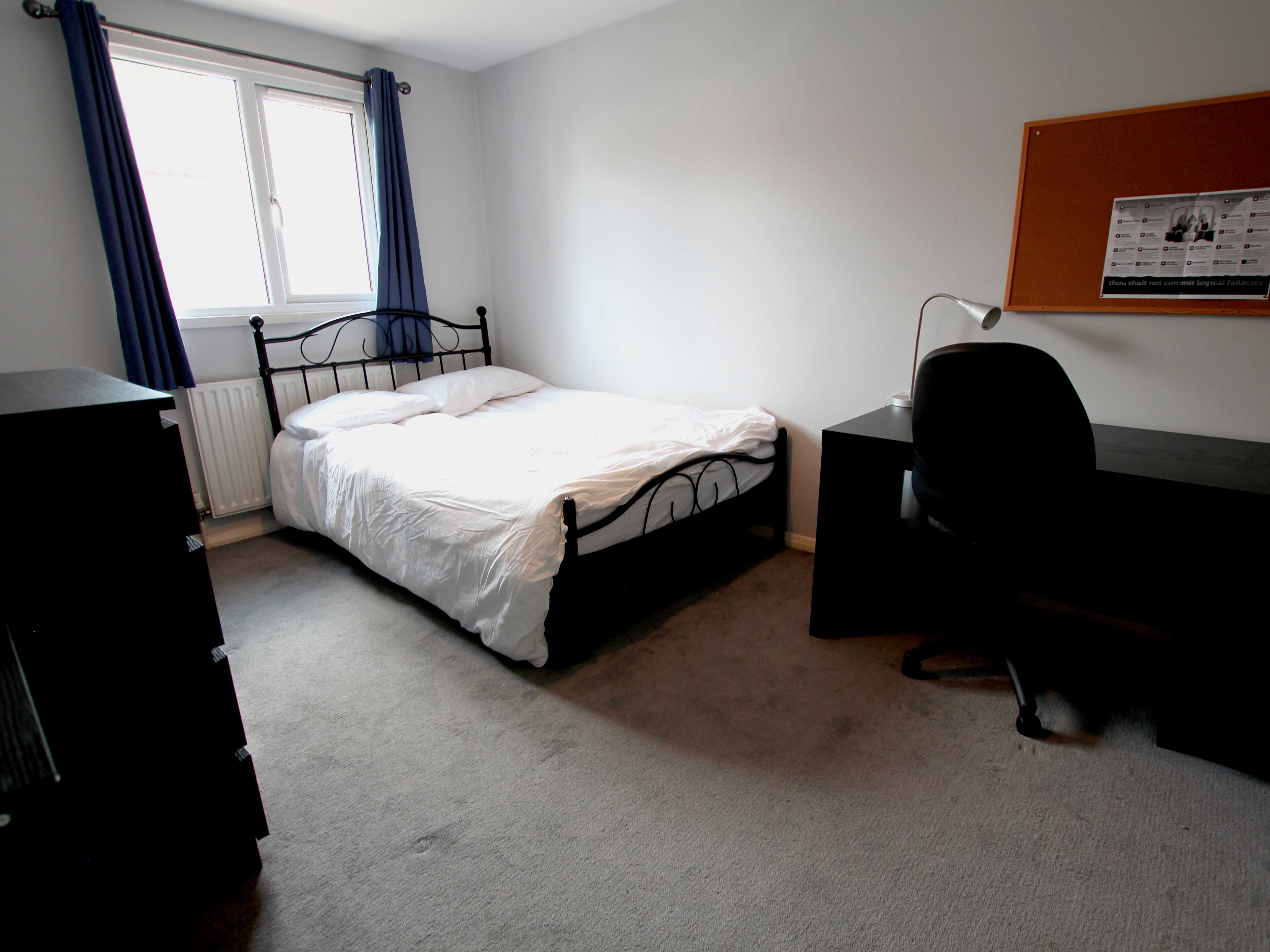 Double bedroom with wardrobe, desk, chest of drawers and bed side cabinet. Lovely views and sunny aspect.